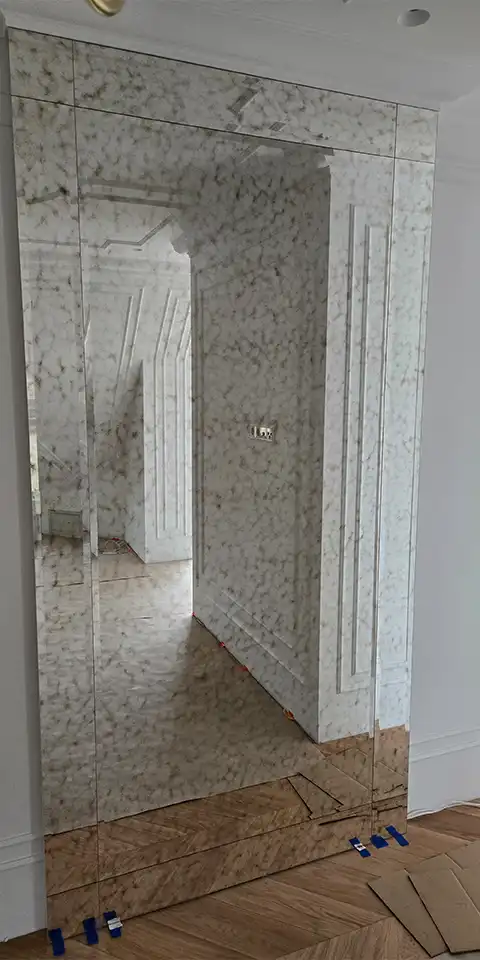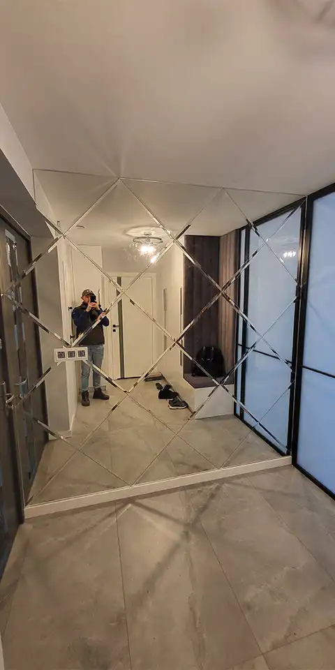 Na specjalne życzenie klienta wykonujemy również lustra, które są w stanie pokryć całą powierzchnię ściany. To dla nas naprawdę duże wyzwanie, którego podejmujemy się niezwykle chętnie.