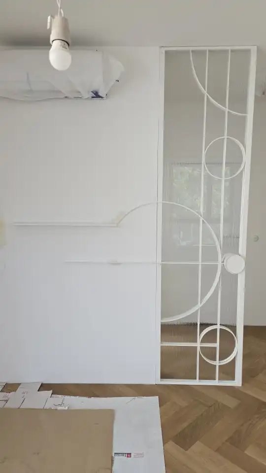 Taką szklaną ścianką można wydzielić niezależne strefy: kuchnię, przedpokój, jadalnię czy nawet sypialnię.