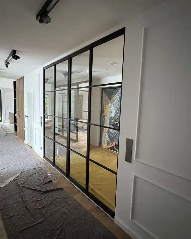 Przeszklone ściany modułowe lub harmonijkowe będą idealnym rozwiązaniem, gdy komuś zależy na podziale jednego pomieszczenia na strefy, bez znacznego podziału.